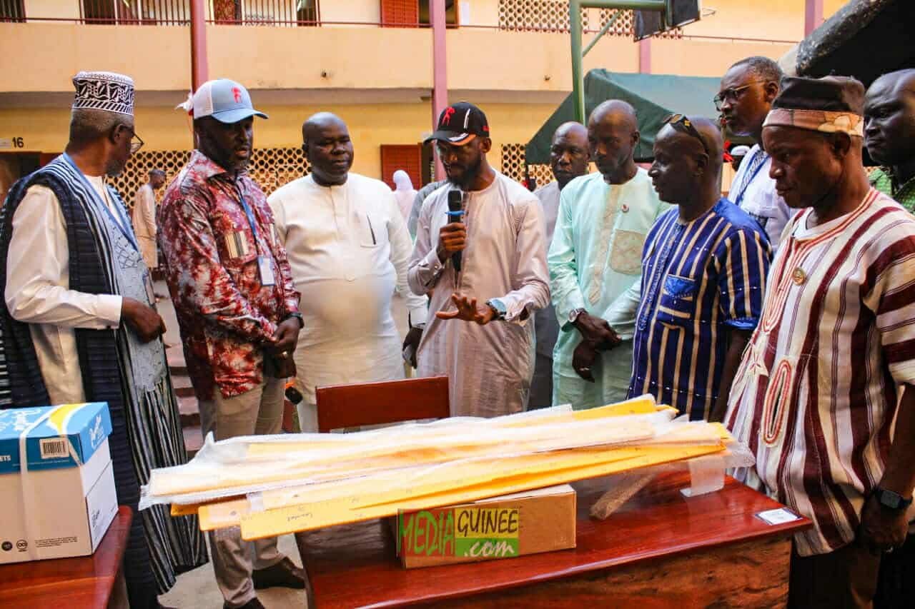 Dans son allocution, Malick Marcel Bangoura, président de l’Amical et inspecteur de l’Habitat à Kindia, est revenu sur la genèse et les valeurs de l’association : « Créée en 2019, notre amicale “Koto Barry” du lycée Yimbaya porte le nom de monsieur Abdoulaye Barry, affectueusement appelé Koto Barry, ici présent. Ce nom, au-delà d’un hommage, symbolise le leadership, la rigueur et le sens élevé du devoir qui ont marqué des générations d’élèves passées entre ses mains. Depuis sa création, l’Amical Koto Barry a pour mission de soutenir et d’accompagner notre école à travers des actions concrètes. Aujourd’hui, nous avons l’honneur d’offrir au lycée Léopold Sédar Senghor de Yimbaya un lot de mobilier de bureau — 24 tables et 24 chaises — ainsi que du matériel didactique destiné aux enseignants. »