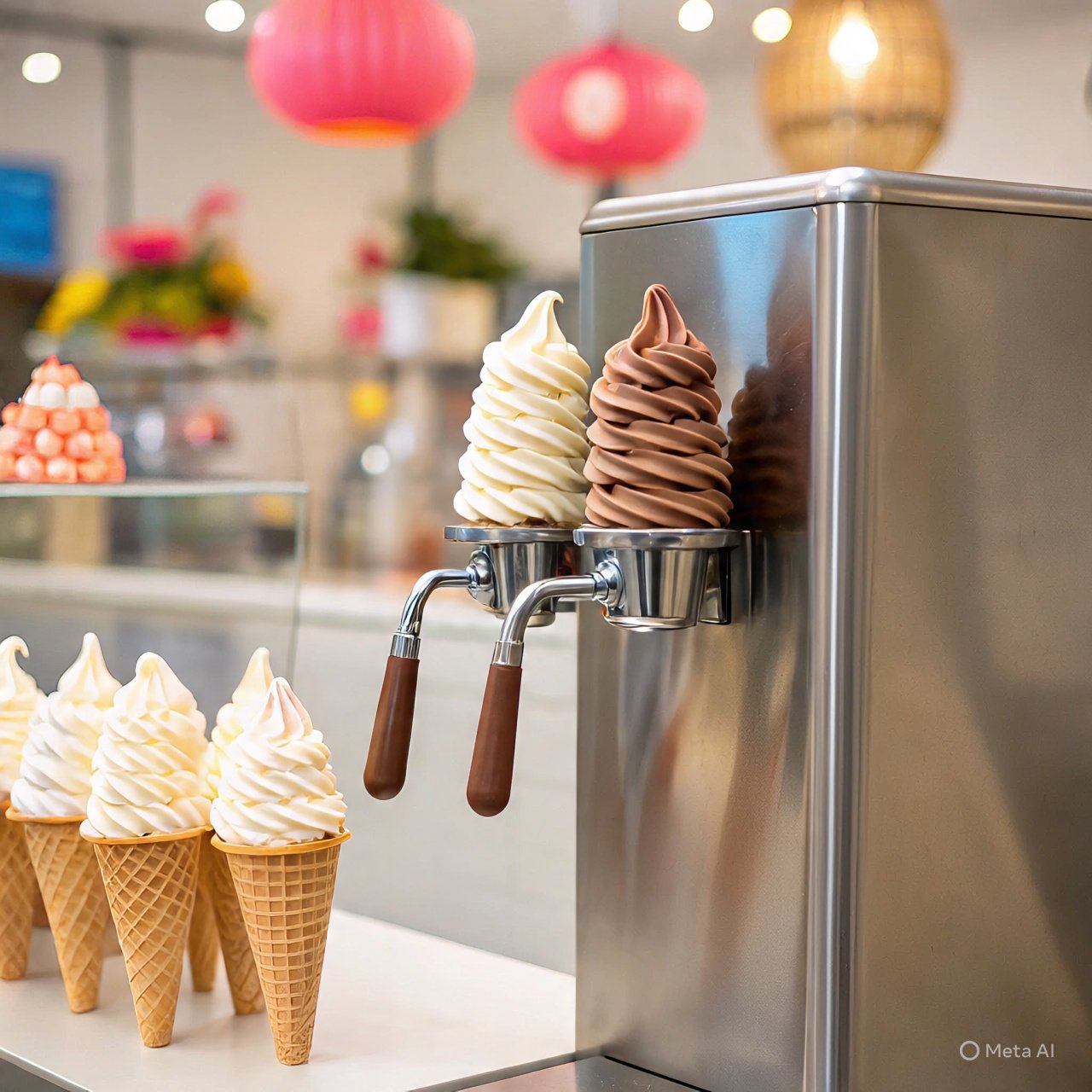 Professional ice cream machine with 2 flavors, ideal for restaurants and cafes.